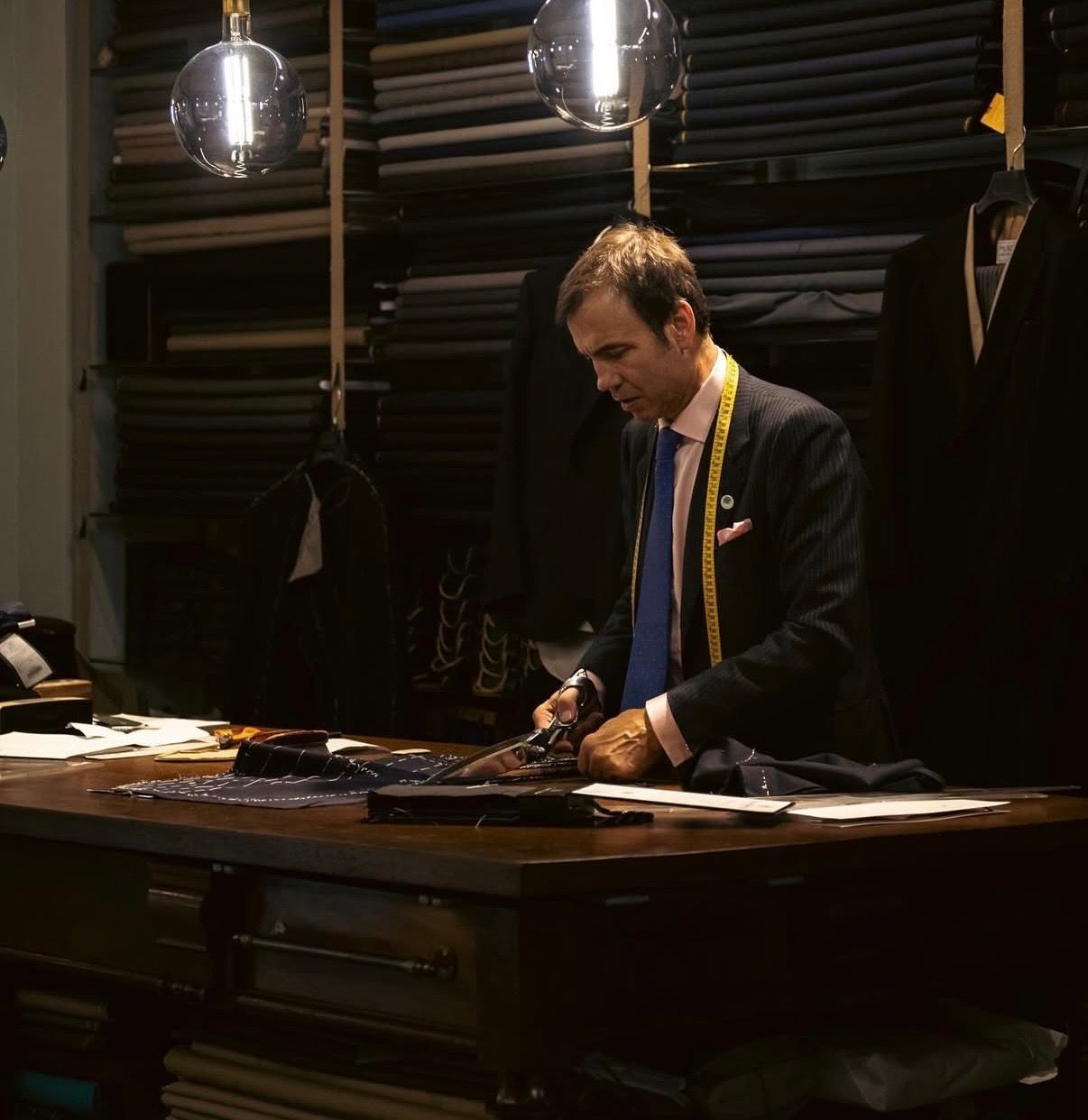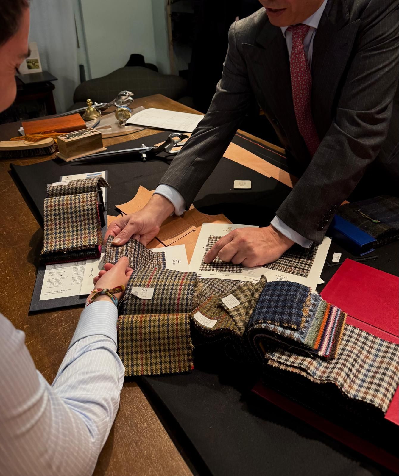 Nuestra sastrería artesanal representa la máxima expresión del oficio. Cada prenda se diseña desde un patrón completamente exclusivo para cada cliente, elaborado y conservado en nuestro archivo. En nuestro taller propio, nuestros maestros artesanos trabajan cada traje con precisión y dedicación, seleccionando tejidos de las mejores casas internacionales. El resultado es una prenda única, de ajuste impecable, creada para reflejar la personalidad y la distinción de quien la viste.
